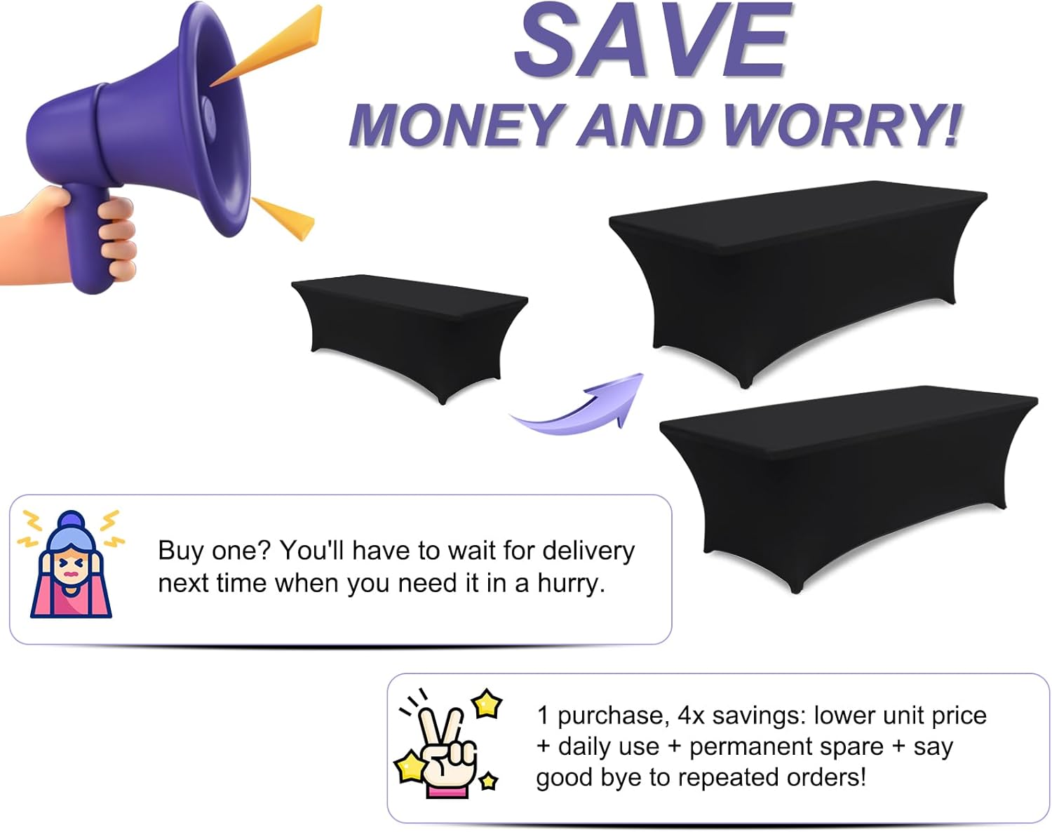 - 1.Why You Need A Table Cover?: When your table has stubborn stains that you can't remove, or the table is not beautiful. But you need to host a party, banquet, anniversary event decor, booth, flash mob display, and more. At this point is it a good idea to spend a lot of money on a new table? No, you just need to put on our table cover and all the defects will be covered. Everyone will see a well-dressed scene. Let us help you do great things with little money.