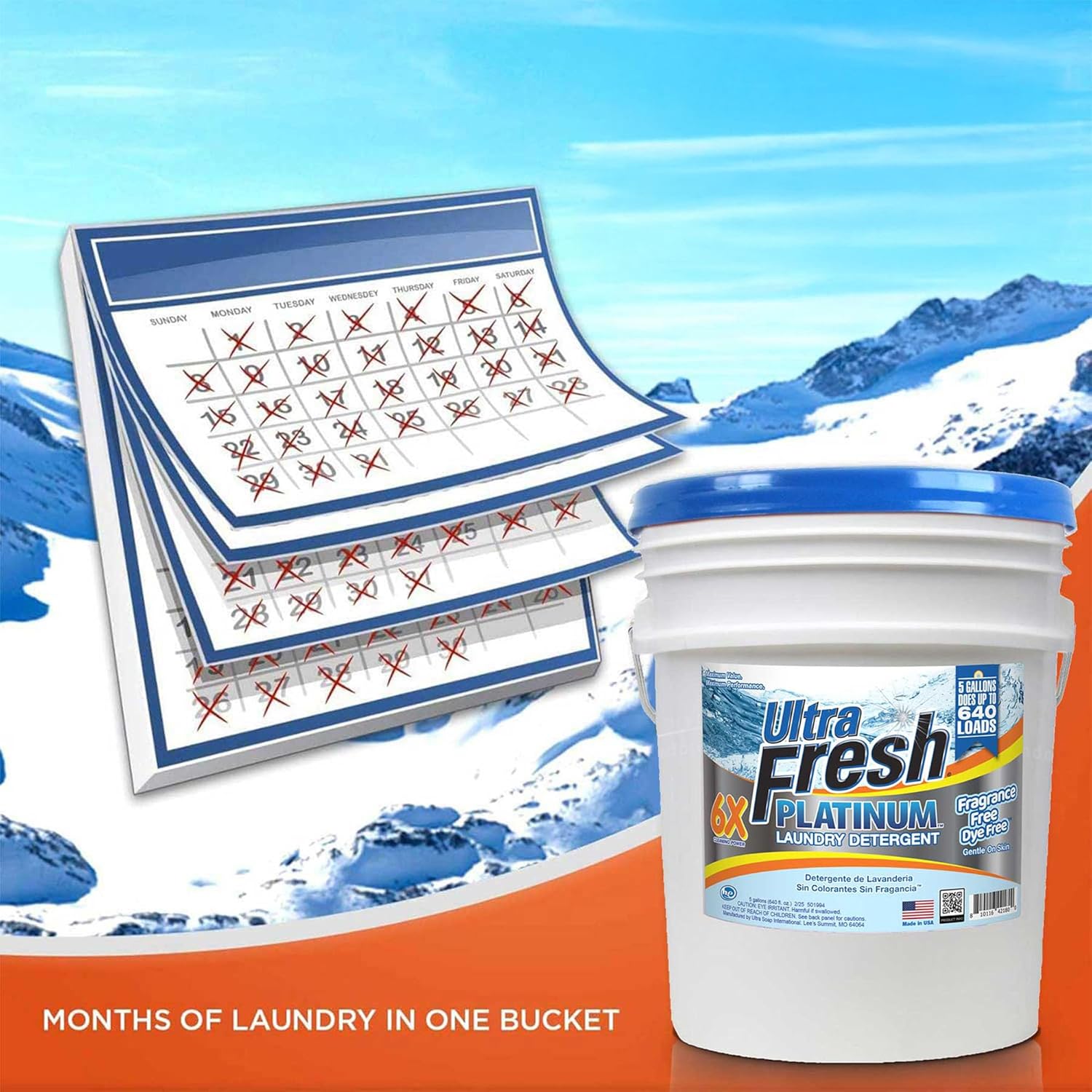 Ultra Fresh Liquid Laundry Detergent Washing Soap, 6X Platinum, Fragrance Free and Dye Free, 5 Gallon - Fabric Odor Remover to Wash Clothes and Sheets