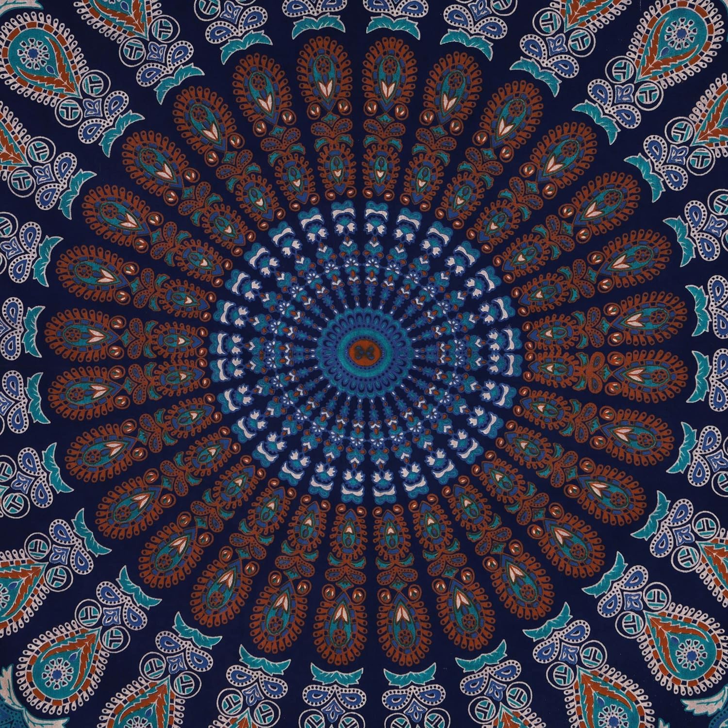 Bless International Handmade Indian hippie Bohemian Psychedelic Peacock Mandala Wall hanging College Dorm Beach Throws Table Cloth Bedding Tapestry (Blue Green, Queen(84x90Inches)(215x230Cms))