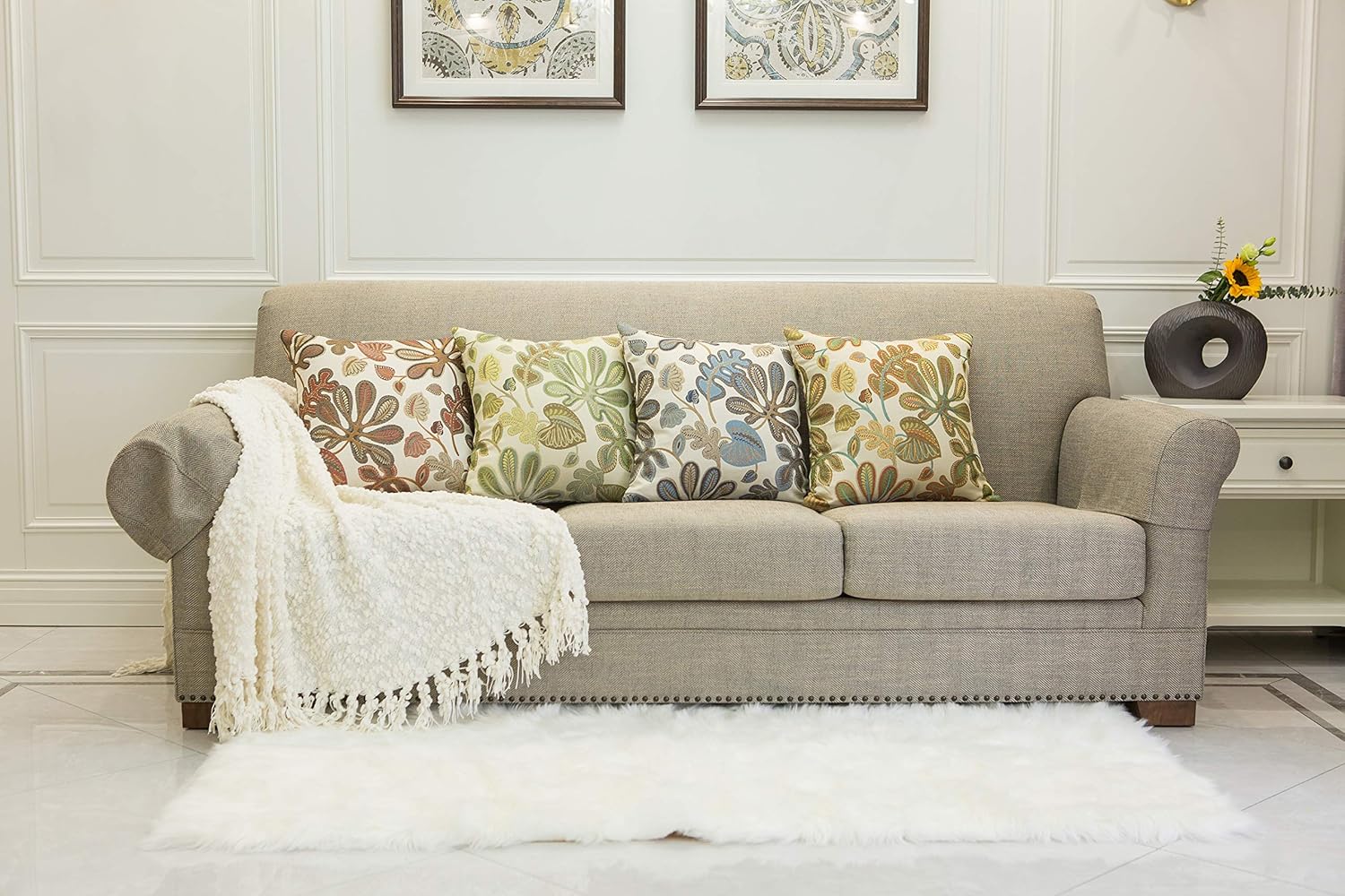 Set of 2 Jacquard Tropical Leaf Pattern Throw Pillow Covers Decorative Pillowcase 20X20 Inches,Teal Cream