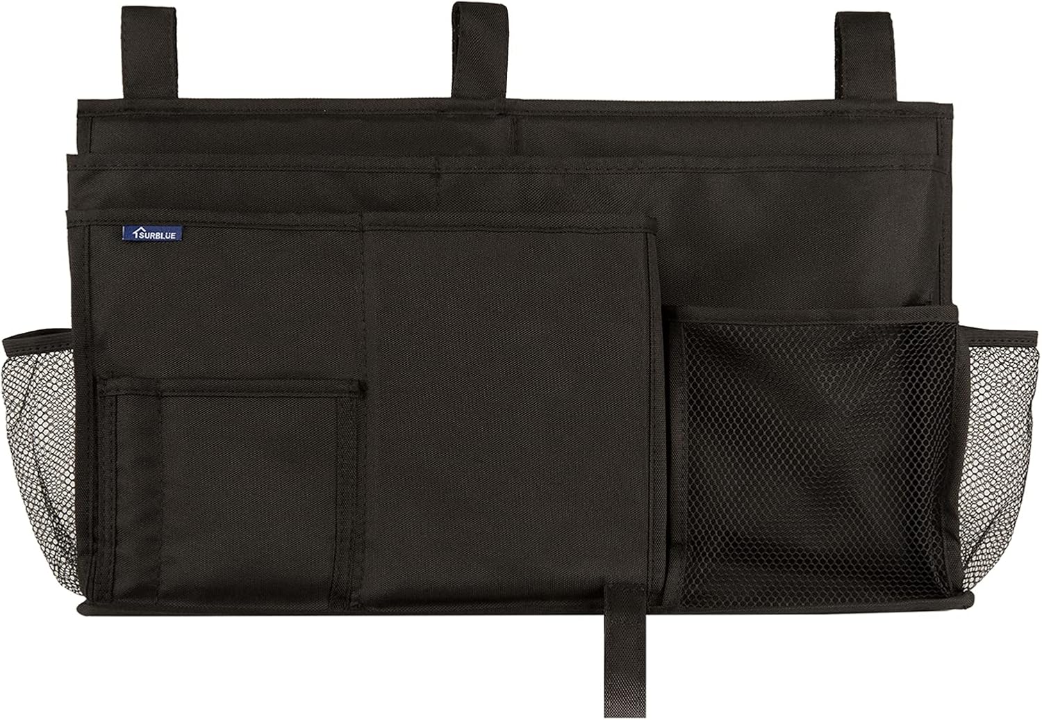 Surblue Caddy Hanging Organizer Bedside Storage Bag for Bunk and Hospital Beds, Black, L