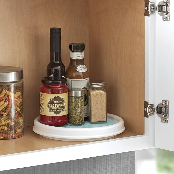 - MAXIMIZE STORAGE: Stylish 9-inch aqua sky turntable makes countertops, cabinets, closets, and even your refrigerator more organized and tidy "