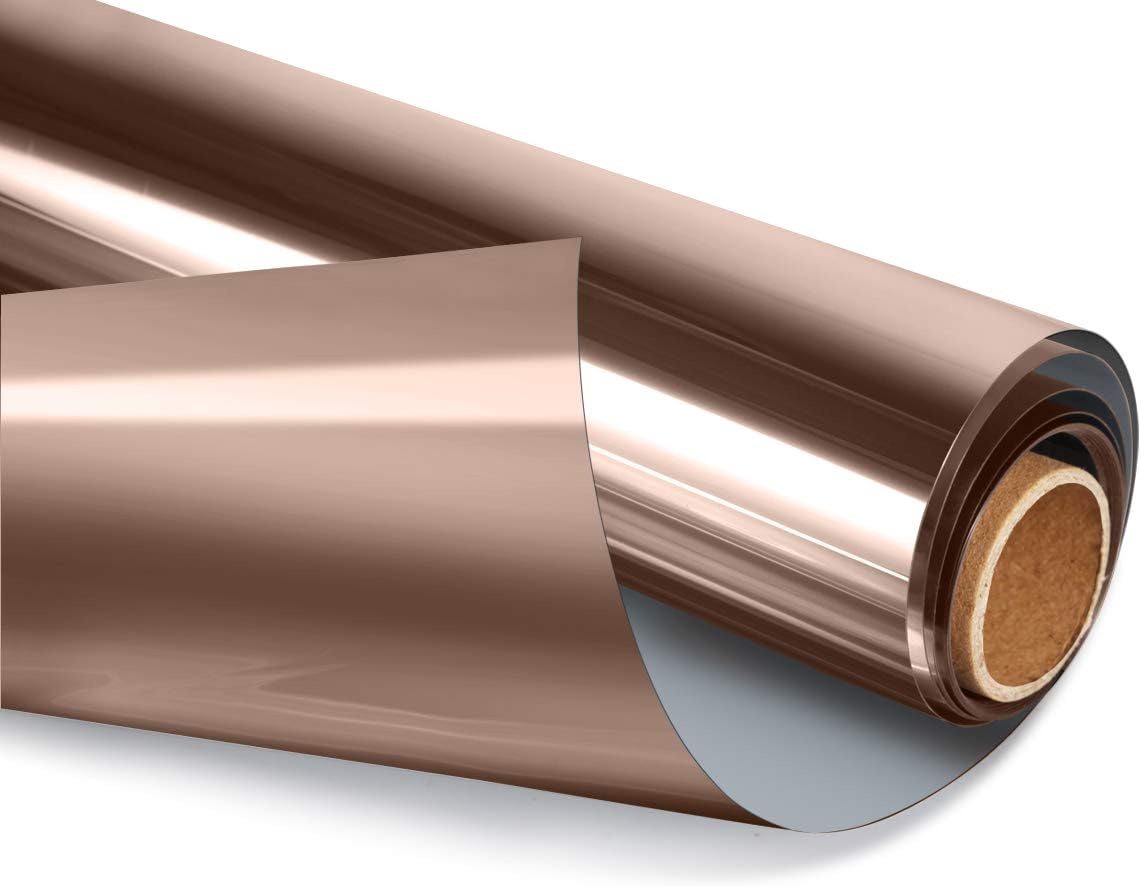 HIDBEA One Way Privacy Window Film, Daytime Mirror Reflective Heat Control UV Sun Blocking Non-Adhesive Static Cling Window Tint for Home and Office (Brown-Silver, 35.4 Inch x 16.4 Feet)
