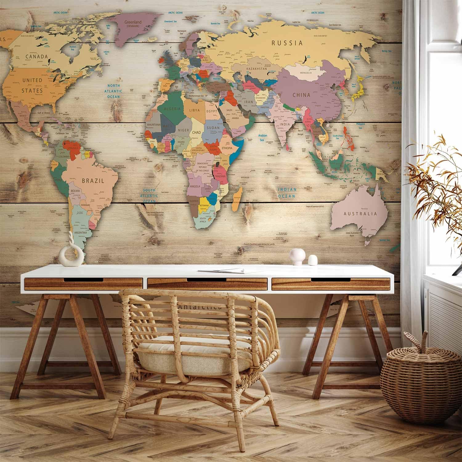 artgeist Wall Mural World Map 96x69 in - XXL Peel and Stick Self-Adhesive Wallpaper Removable Large Sticker Foil Wall Decor Print Picture Image Design Map of The World k-B-0009-a-b