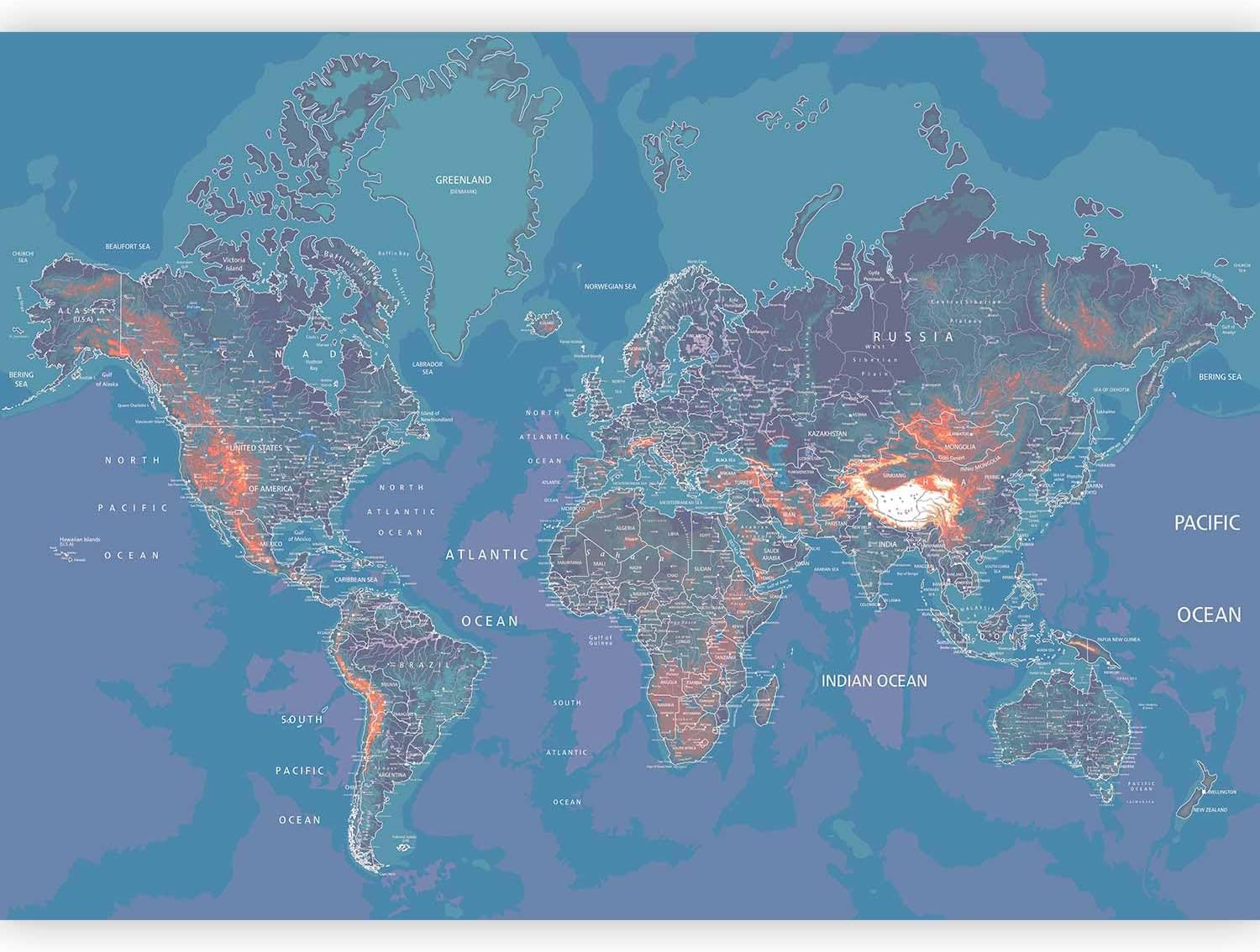 artgeist Wall Mural World Map 157x110 in - XXL Non-Woven Wallpaper Fleece Wall Decor Photo Print Picture Image Design Home Map of The World k-A-0061-a-d