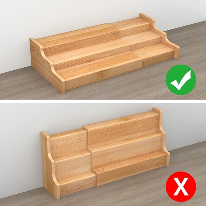 - Adjustable Cabinet Organizer: Expand the wooden spice rack to the size that fits your space and needs, size 12.70”~22.20”L * 7.70”W * 4.30”H