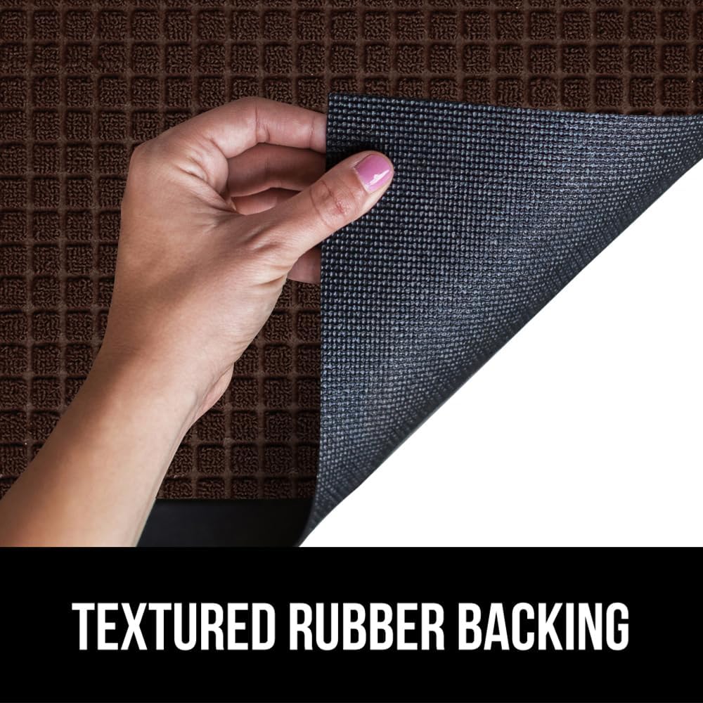 GORILLA GRIP 100% Waterproof All-Season WeatherMax Doormat, 72x24, US Designed Natural Rubber, Stain and Fade Resistant, Low Profile Indoor Outdoor Door Mats, Easy Clean Patio Mat, Coffee Squares