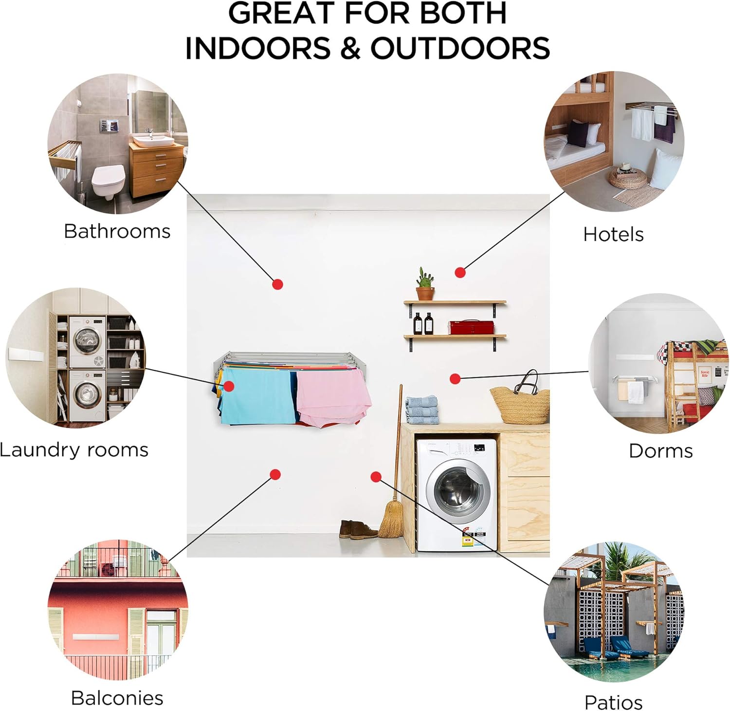 - INDOOR & OUTDOOR: Stainless steel and aluminum components make it perfect for patios, balconies, RVs as well as laundry rooms, bathrooms, hotel and dorm rooms.