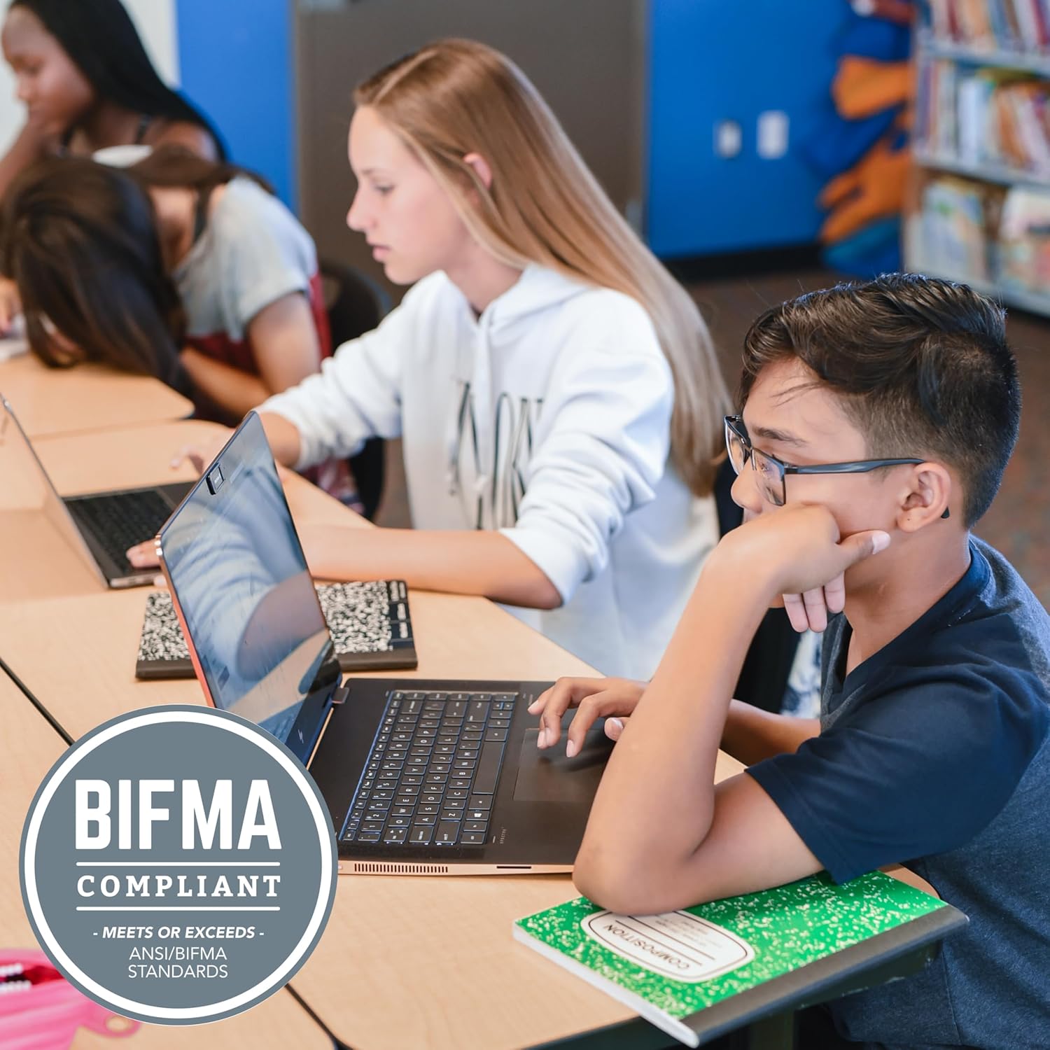 FDP Rectangle Activity School and Classroom Kids Table (30 x 72 inch), Chunky Toddler Leg, Adjustable Height 15-24 inches - Gray Top and Green Edge