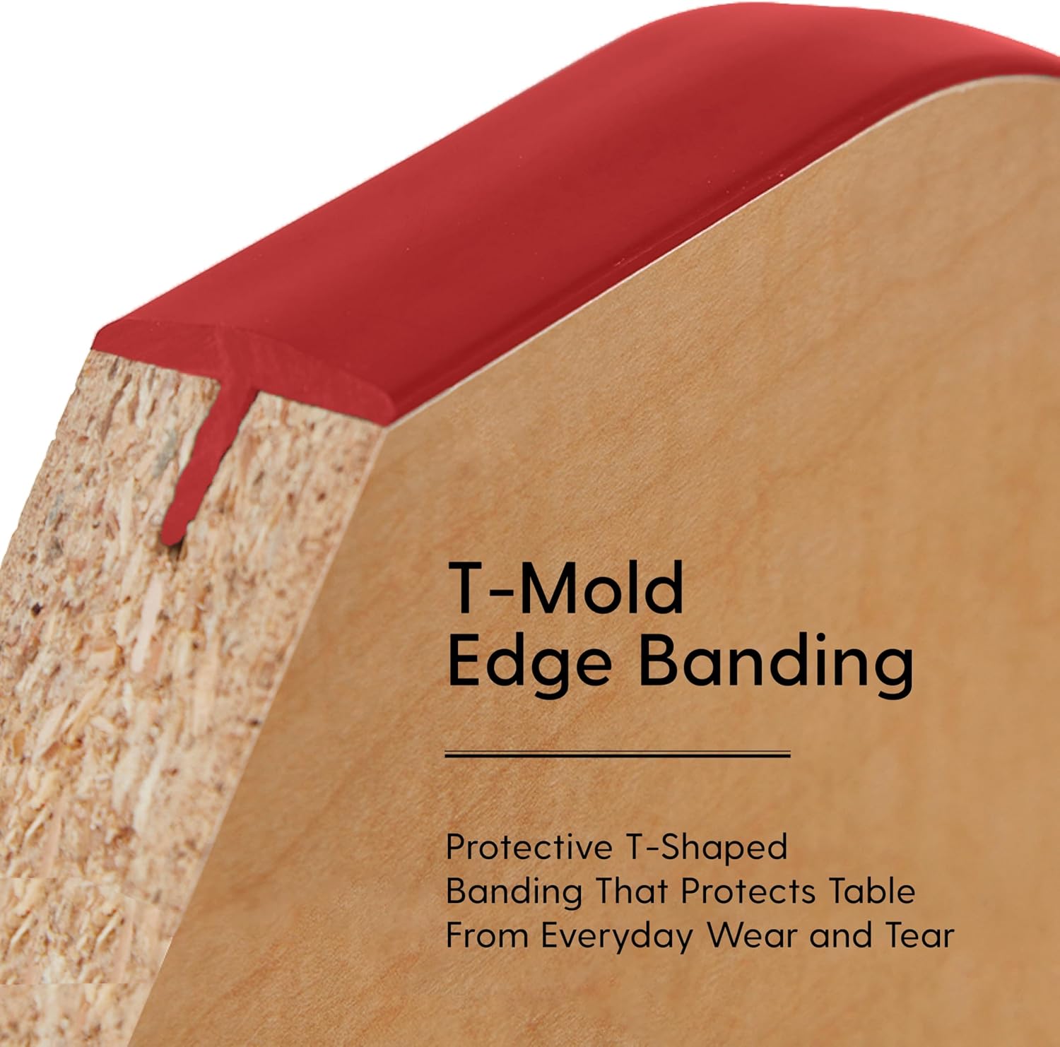 FDP Rectangle Activity School and Classroom Kids Table (30 x 72 inch), Chunky Toddler Leg, Adjustable Height 15-24 inches - Maple Top and Red Edge