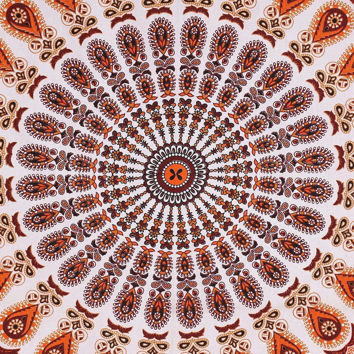 Bless International Handmade Indian hippie Bohemian Psychedelic Peacock Mandala Wall hanging College Dorm Beach Throws Table Cloth Bedding Tapestry (Orange Brown, Twin(54x72Inches)(140x185cms))