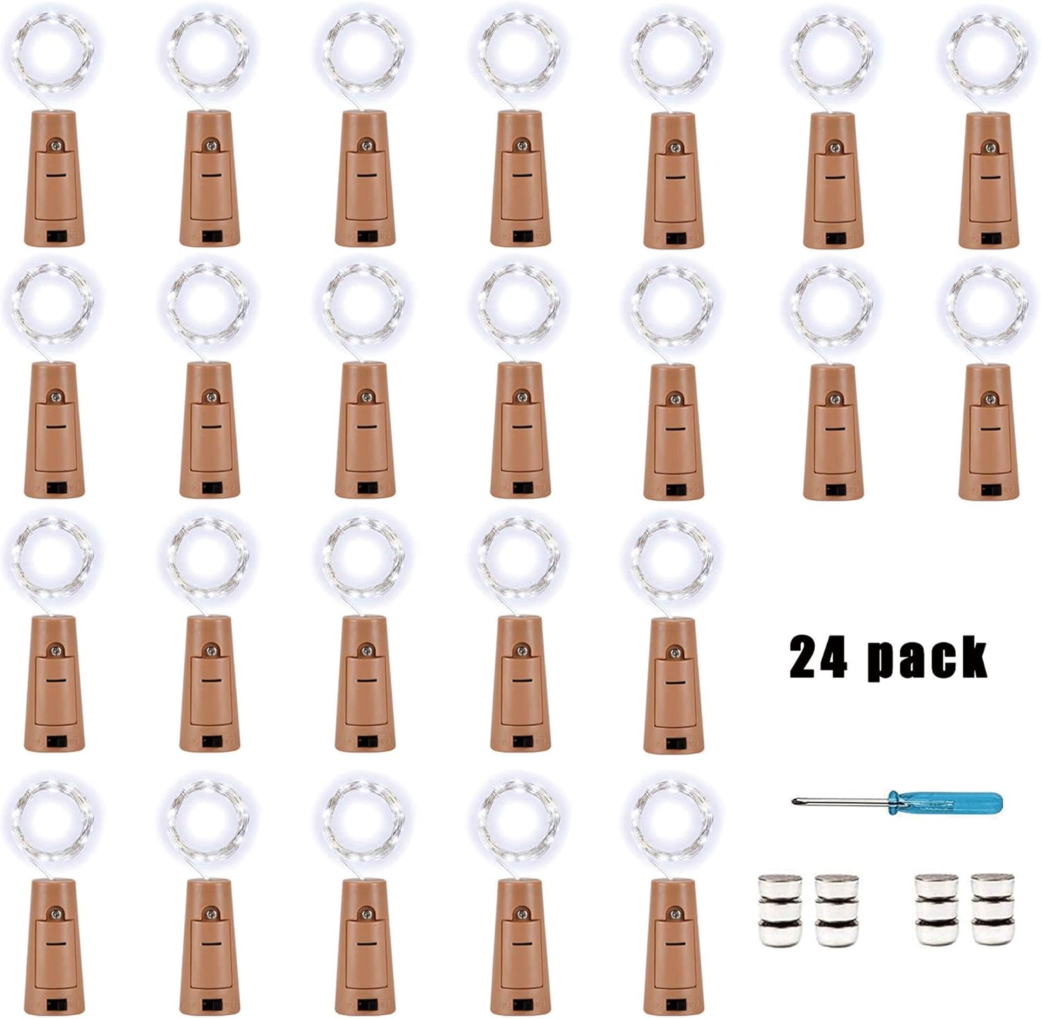 - Package&quality: 24 Pack Artificial cork lights for wine bottles, 12 extra batteries. We offer 1-Year quality.Please contact the seller directly if you have any quality problems