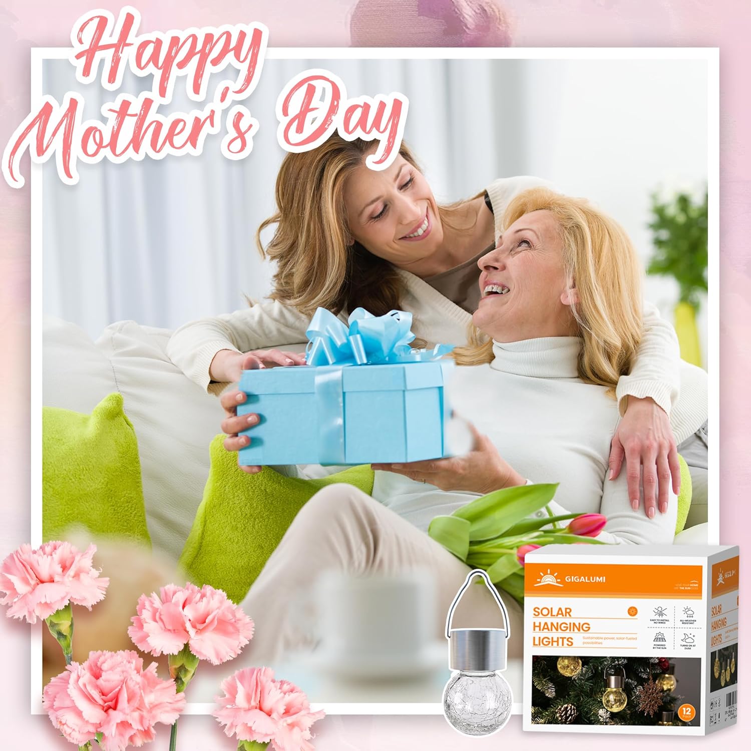 GIGALUMI 8 Pack Solar Hanging Lights, Multi-Color Changing Cracked Glass Hanging Ball Outdoor Lights with Waterproof Solar Lanterns for Garden, Yard, Patio, Lawn