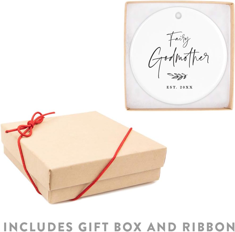 Andaz Press Custom Year Round Ceramic Porcelain Christmas Tree Ornament Keepsake Collectible Godmother Gift, Fairy Godmother Est. 2024, Antique Handdrawn, 1-Pack