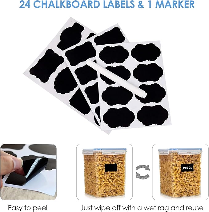 - Make a Huge Difference in Pantry Organization ---- If you already got tired of messy flour and sugar bags, then don't hesitate to choose our food storage containers. These flour containers will make everything looks neat and in order. Come with 4 premium food storage canisters and 24 Labels, they will also be an ideal gift for any family.