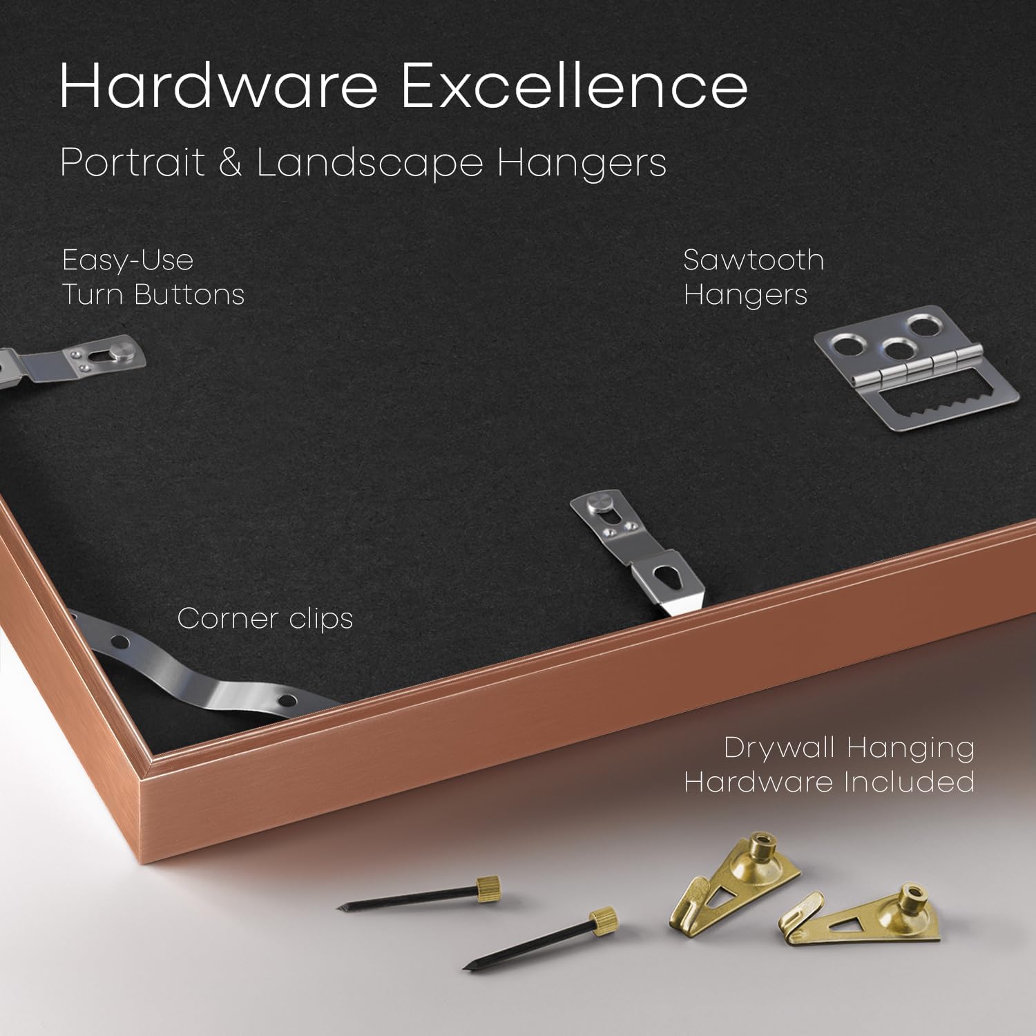 Homeforia 12x16 Rose Gold Picture Frame, High End Metal 12x16 Poster Frames with Mat 9x12 Photo, 12 x 16 Rose Gold Frames Matted to 9 by 12 Print, 16x12 Thin Frames, Tempered Glass, Wall Kit, Set of 1
