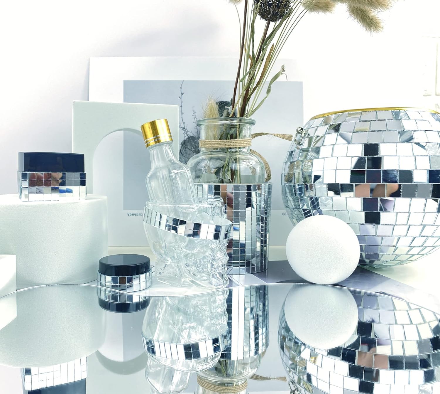 - 【PACKAGE INCLUDED】 Each package has 3600 pieces of square mirror mosaic tiles with self-adhesive backing. Each small mosaic tile can be split independently to decorate other items according to your own ideas.