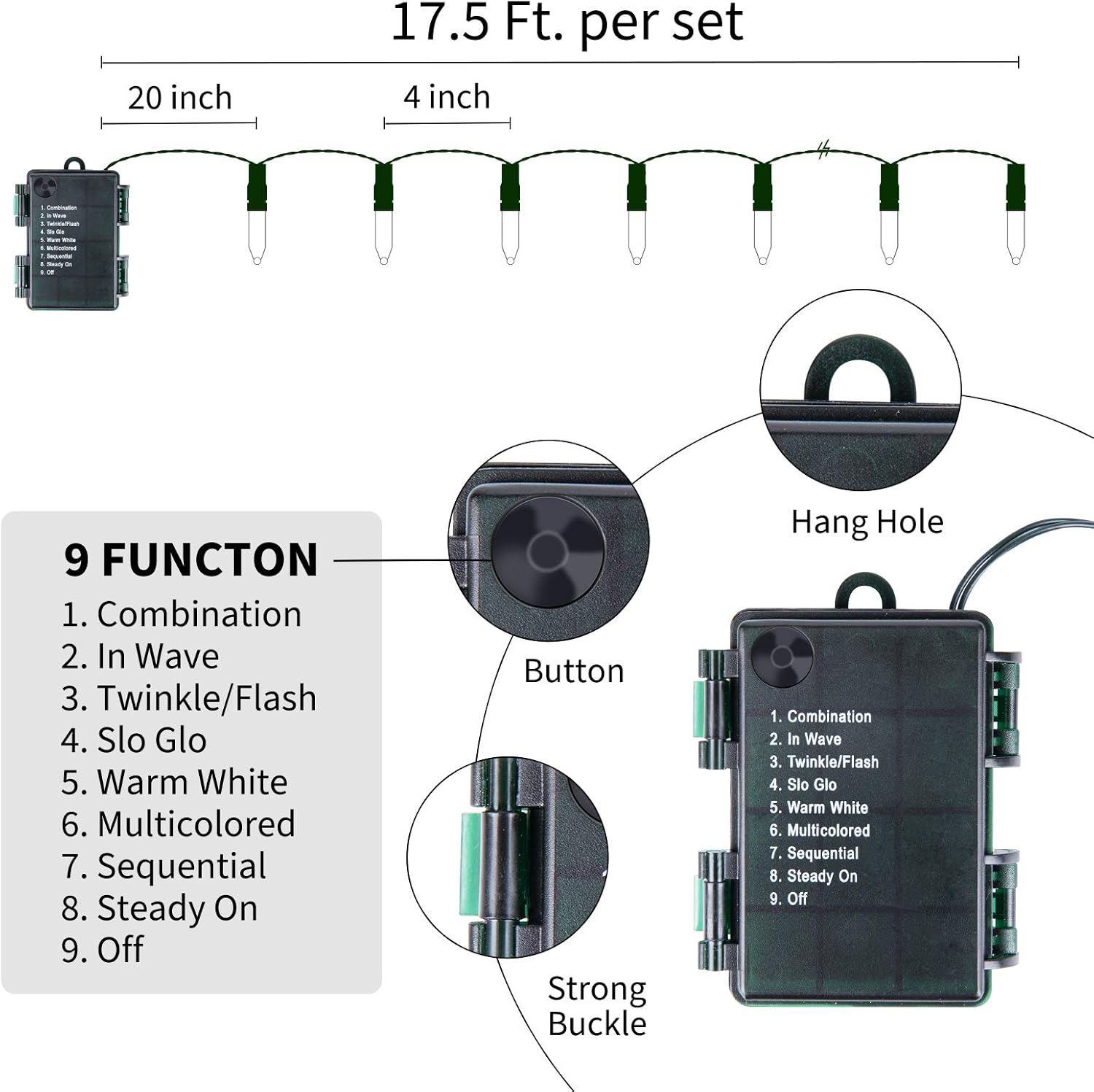 - Battery operated: 3 AA batteries (not included) operated 17.7 Feet 4 pack color changing 50 LED strands, 3.9 inches lights spacing with compact waterproof battery control box, easy positioning or hanging anywhere desired, also a wonderful gift for family, friends and relatives