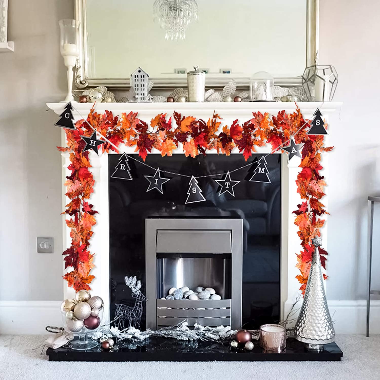 - 【Package】 - 2 pieces of 5.9 feet/piece artificial maple leaf garlands, total length: 11.8 feet. The orange, yellow, and red and more color maple leaves make for a great blend of colors to warm up any room.