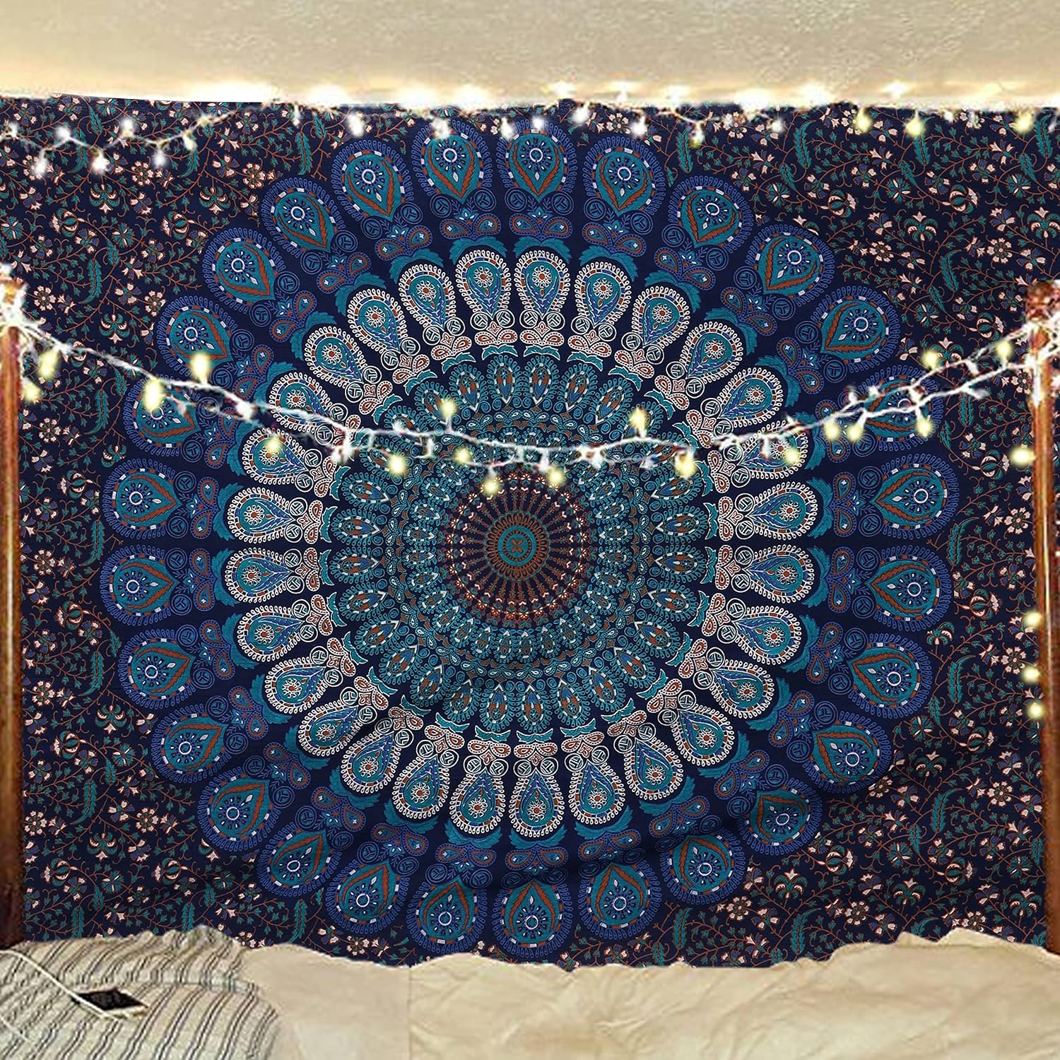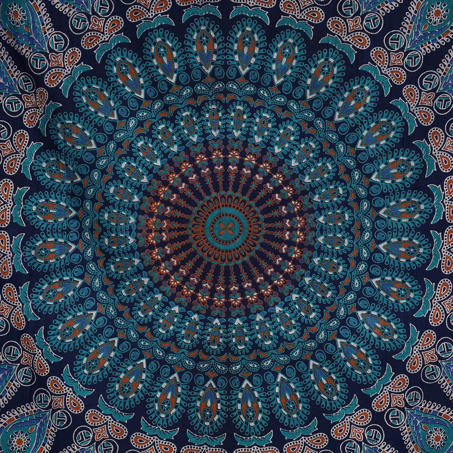 Bless International Handmade Indian hippie Bohemian Psychedelic Peacock Mandala Wall hanging College Dorm Beach Throws Table Cloth Bedding Tapestry (Blue Green, Poster(30x40Inches)(76x101cms))