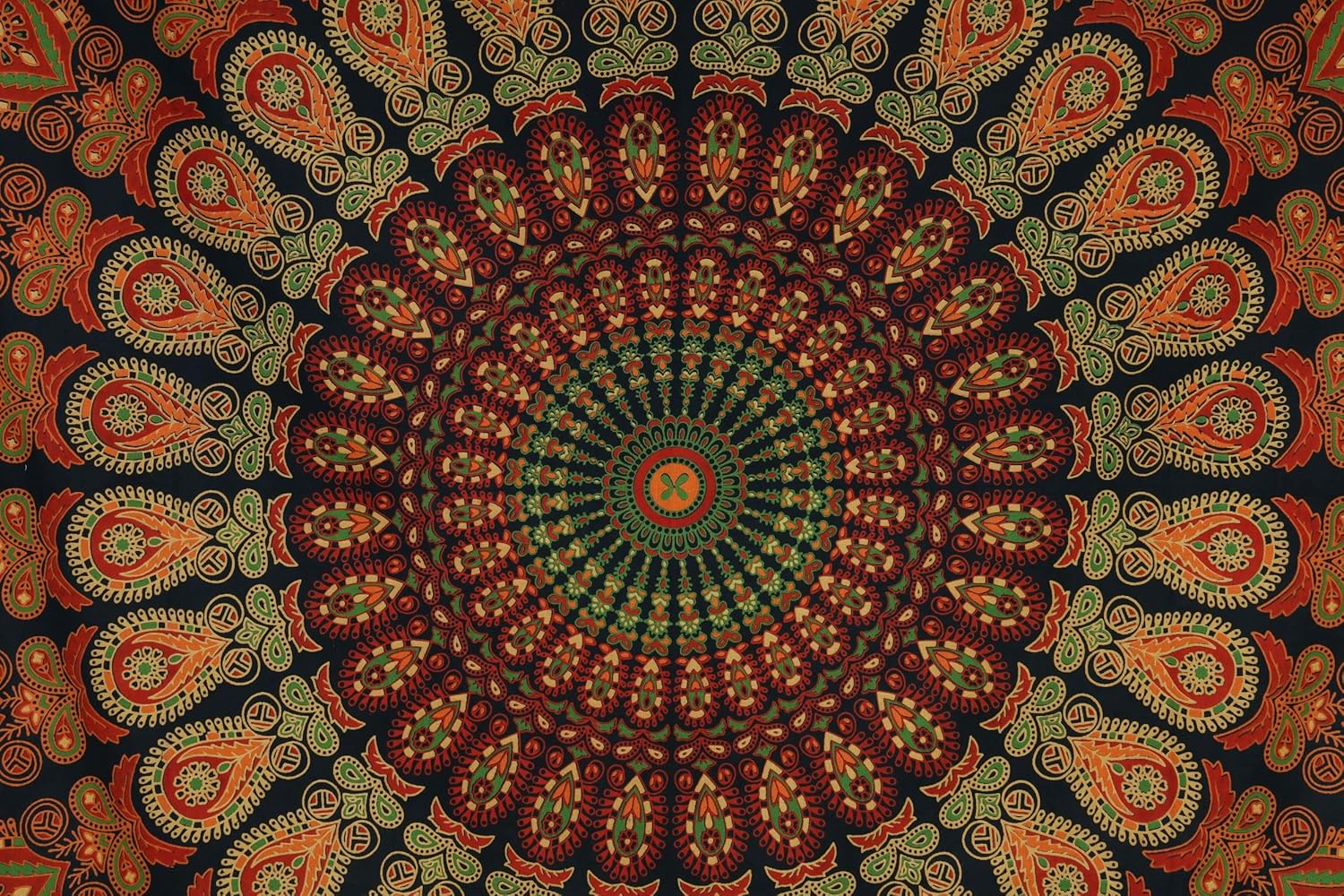 Bless International Handmade Indian hippie Bohemian Psychedelic Peacock Mandala Wall hanging College Dorm Beach Throws Table Cloth Bedding Tapestry (Golden Green, Medium(54x60Inches)(137x152cms))