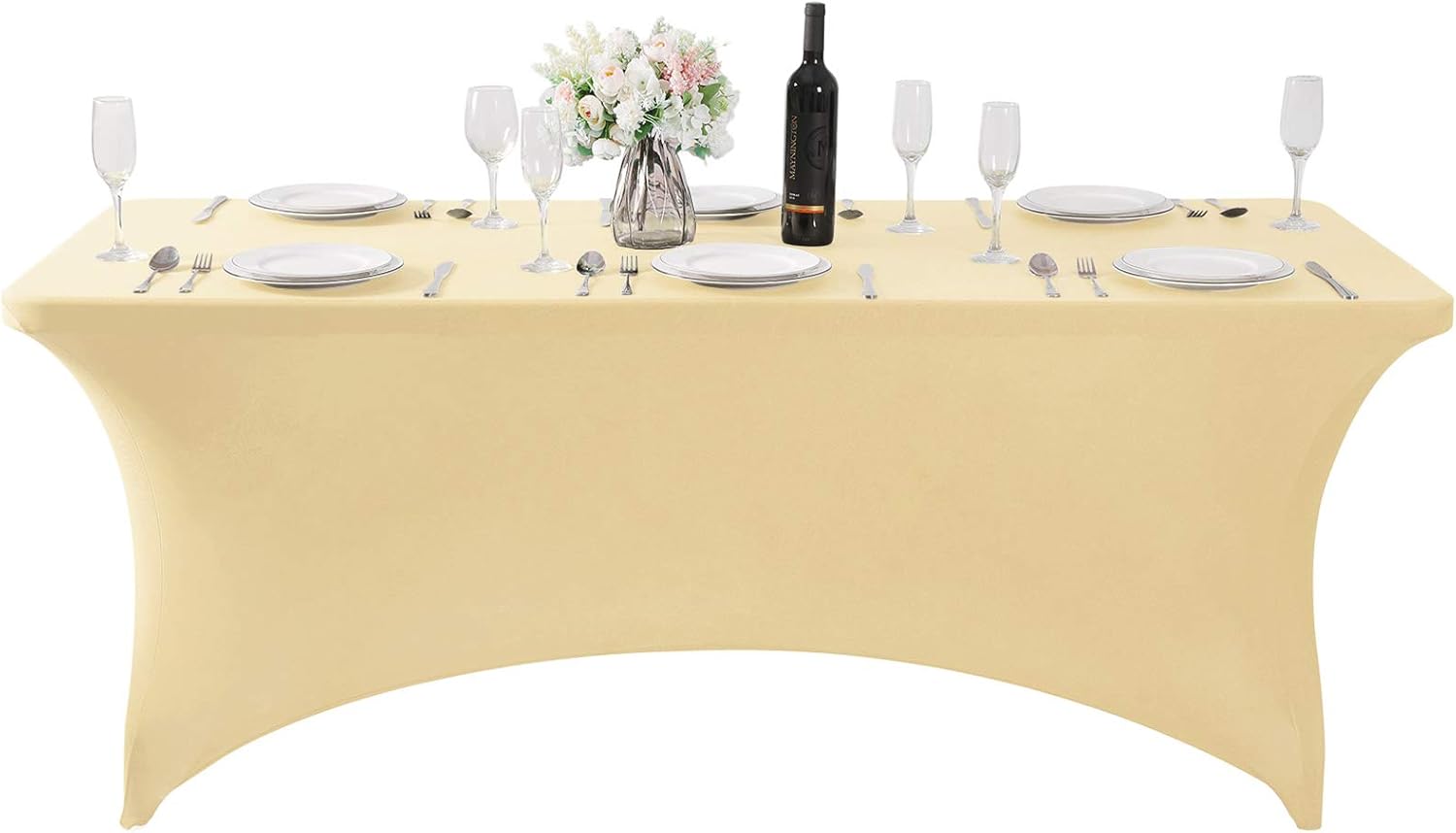 Spandex Table Cover for 6Ft or 4fT or 8ft Table Universal Fitted Stretch Tablecloth for Party, Banquet, Wedding and Events-Champagne