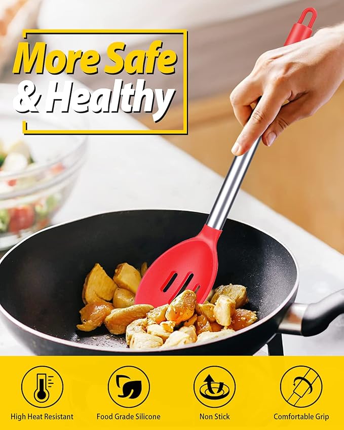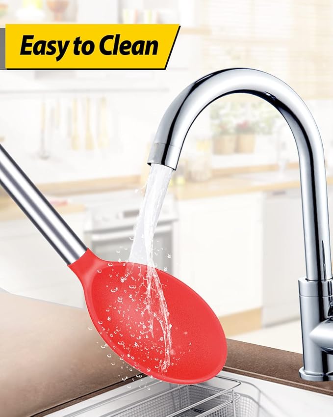 - More Safe and Healthy : Our silicone spoons are made of food-grade silicone, free of BPA;Even at high temperatures, there is no need to worry about melting or deforming;And the soft silicone head won't scratch the coating, it can better protect your pot