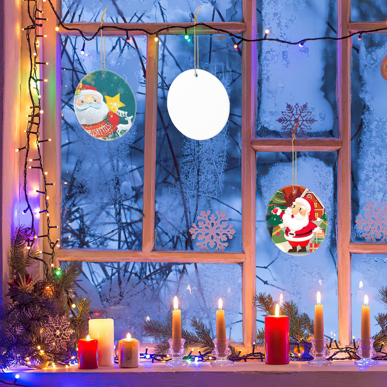 Sublimation Ornament Blanks Bulk 2.83 Inch Round Blank Ornament Discs with Gold String for Crafting DIY Personalized Xmas Tree Keepsake Crafts Gift 10 Pieces
