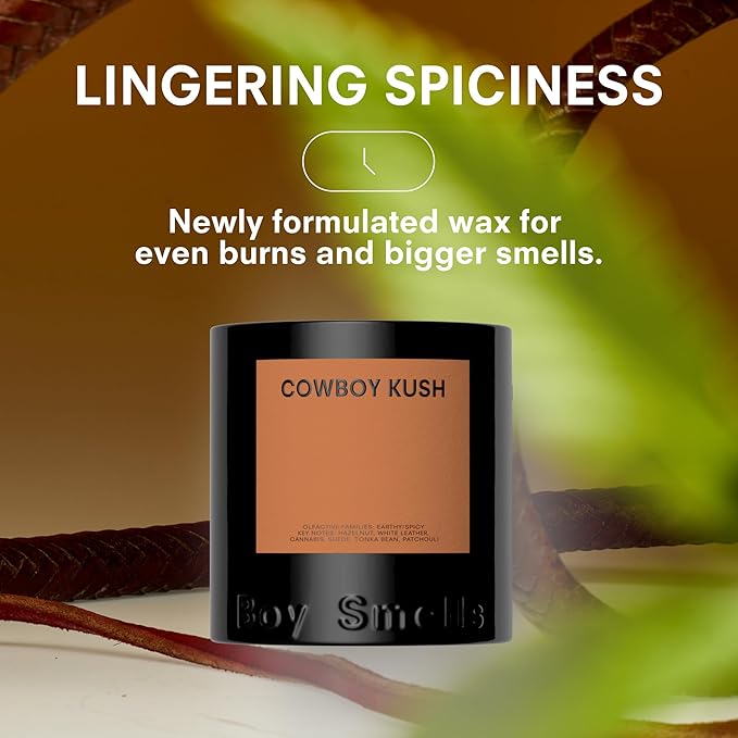 Boy Smells - Cowboy Kush Scented Candles for Men and Women - 8.5 oz - Soy, Coconut Wax Candle Blend - Aromatic Candles for Home with Suede, Saffron and Patchouli - 50-Hour Burn - Cotton Wick