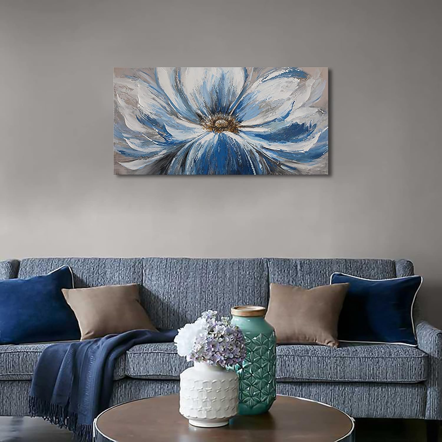 Flower Canvas Wall Art for Living Room Large White Blue Flower Picture Giclee Print Painting Wall Decor Framed Artwork Ready to Hang for Home Bedroom Wall Decoration Size 20x40