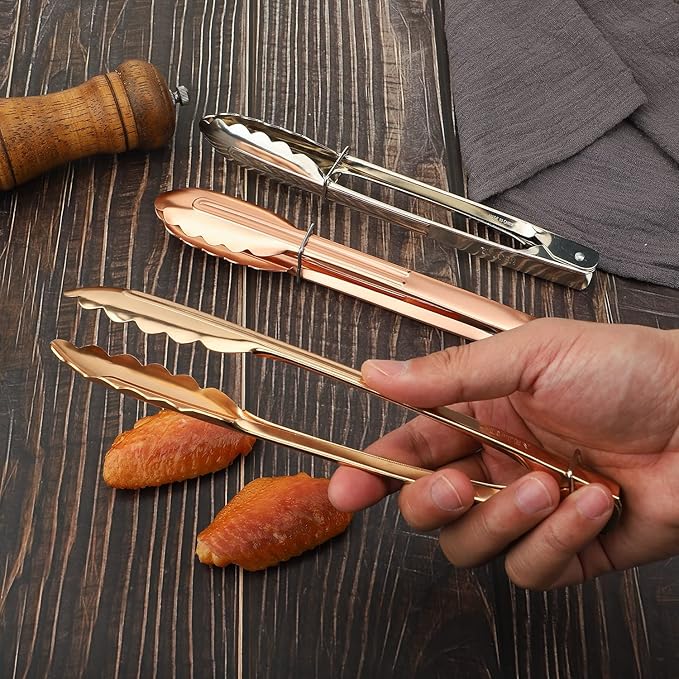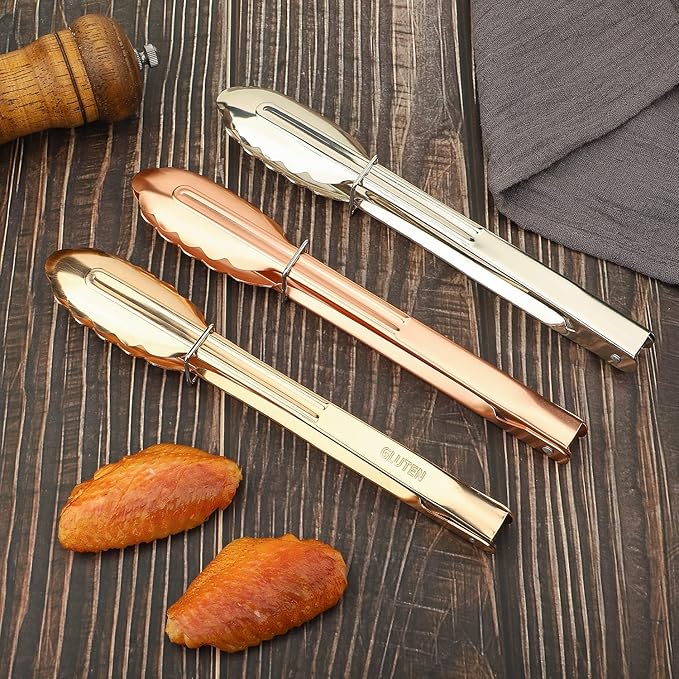 - PACKAGE CONTENT - 3 Γ 9-Inch serving tongs with scalloped tips, non-slip and can effectively grasp the food.