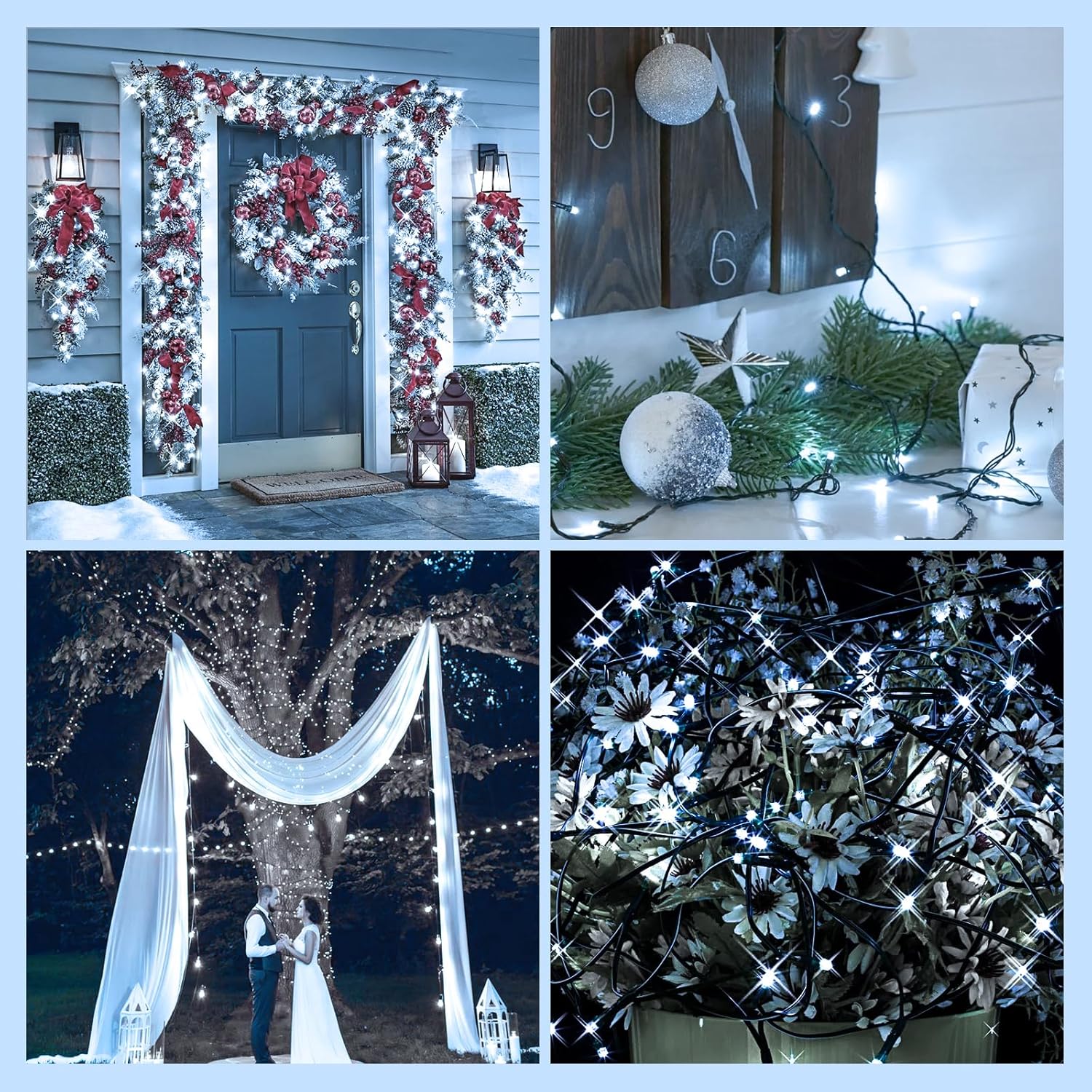 YIQU White 82FT 200 LED Christmas String Lights Outdoor/Indoor (Extendable Green Wire, Ultra-Bright with 8 Modes, UL Certified), Fairy String Lights for Xmas Tree Holiday Party Decoration, Cool White