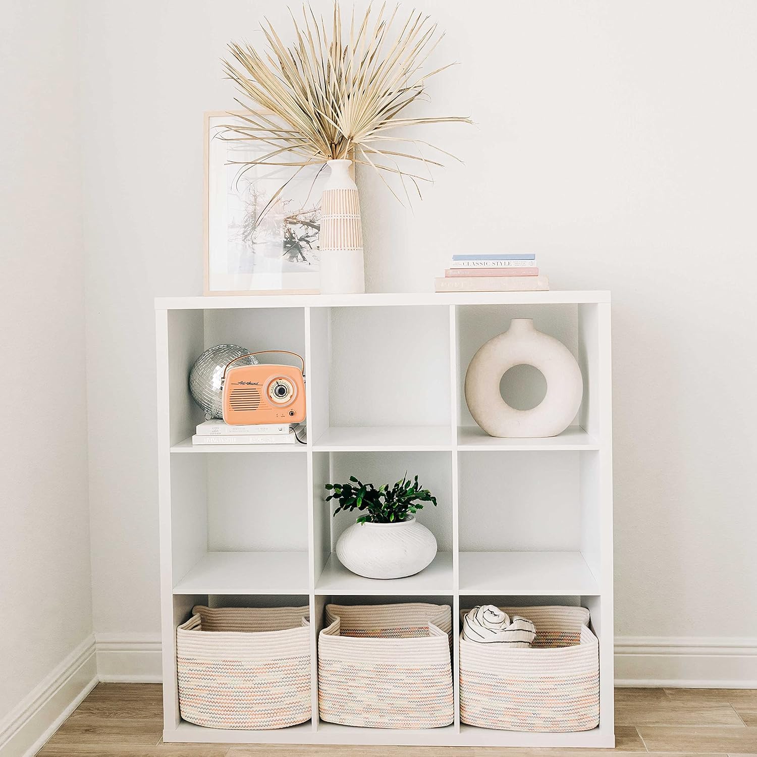 OrganiHaus Set of 3 Woven Storage Baskets for Organizing, Cotton Rope Organizer Bins for Shelves, Closet & Nursery, Dog Toy Basket, Decorative Bins for Toys, Towels & Books - 15x10x9, Rainbow Stitches