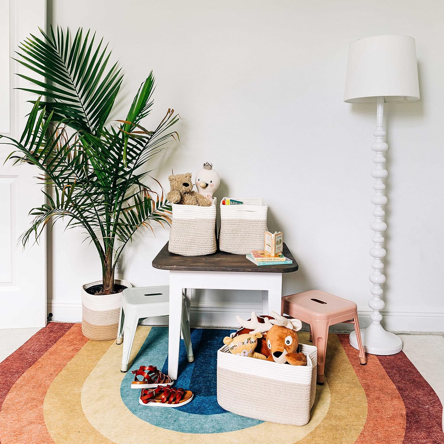 - Vintage Colors to Match Every Style – Charming and stylish these versatile storage organizer bins come in 7 exclusive colors to match your home closet or style including 3-tone gray, blue / off-white, rainbow / off-white, pink / off-white, brown / off-white, gray / black, gray / honey, gray / off-white, honey / off-white, light honey / off-white, black, white and rainbow.