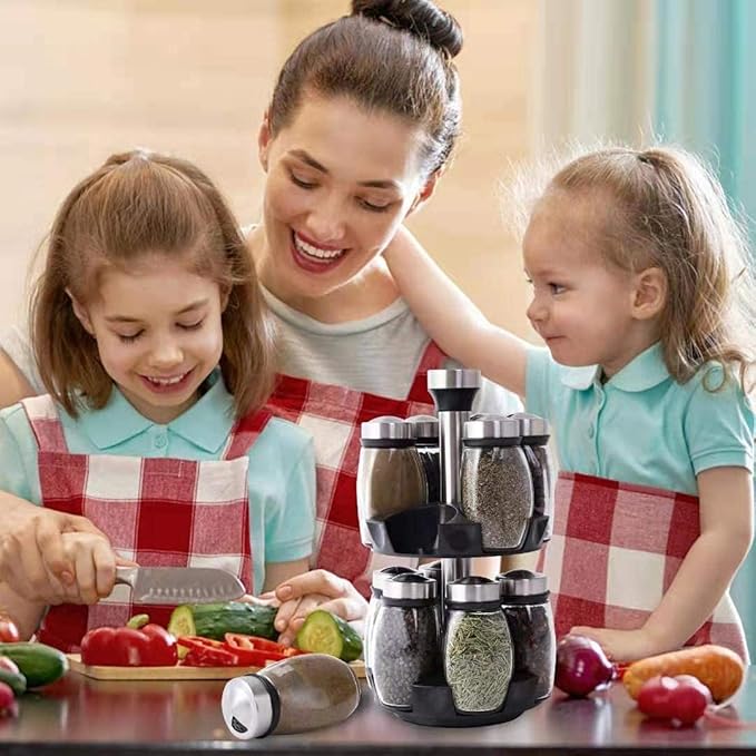 - 【Meet Your Various Needs】It contains 12 spice containers for your frequently-used spices and multiple seasoning holes help you to use it conveniently. you can use them as oil bottles, salt shakers, pepper shakers and so on, which means you can be handy during the cooking process.
