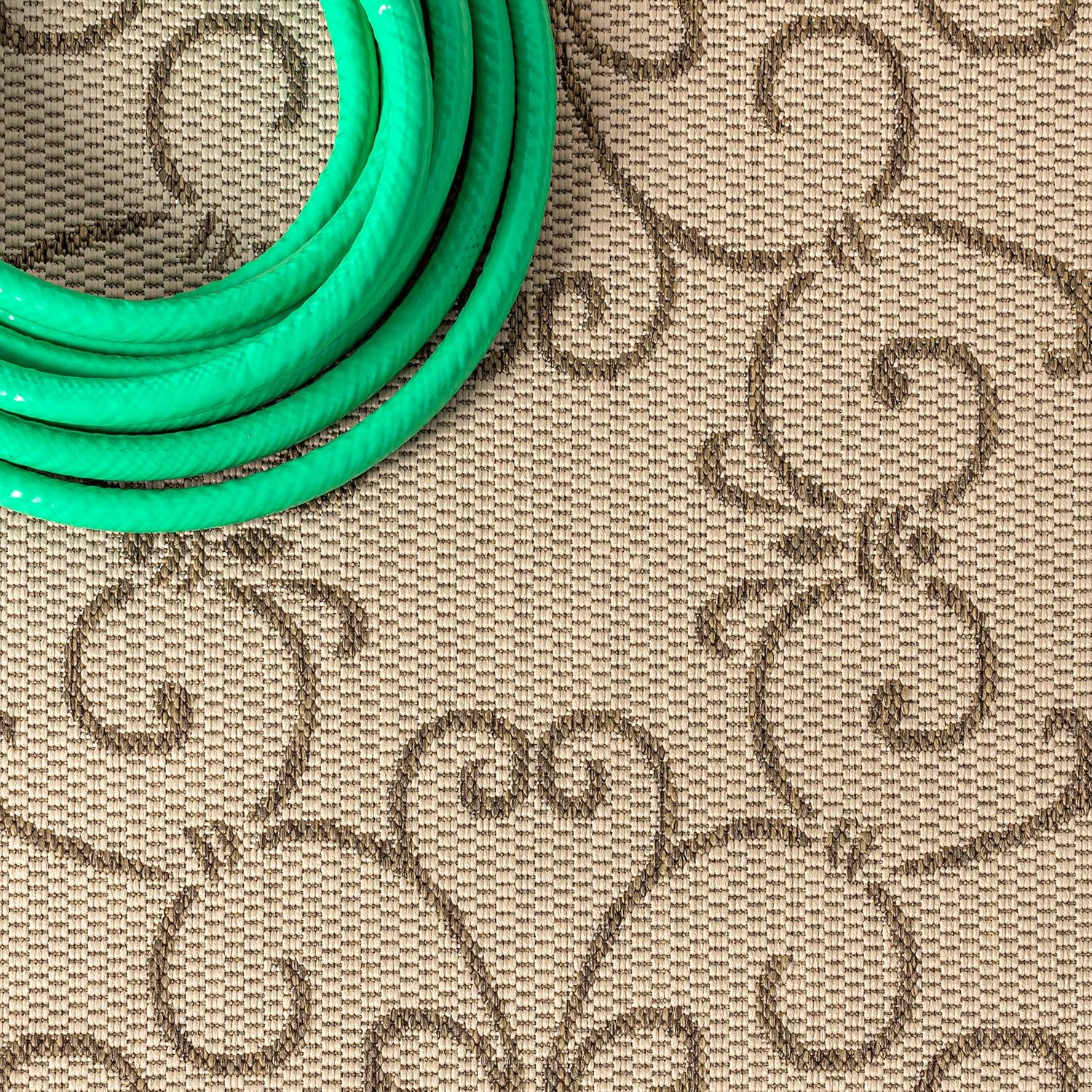 JONATHAN Y Vintage Filigree Indoor Outdoor Runner Rug 2X10 Beige/Brown, Charleston Textured Weave for Backyard, Patio, Porch, Easy-Cleaning, High Traffic, Pet-Friendly, Non-Shedding (SMB106A-210)