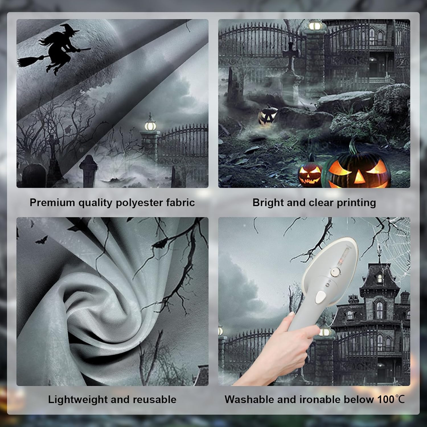 - Newly Upgraded Material: The Halloween backdrop is made of high quality polyester fabric, which has the advantages of high resolution digital printing, eye-catching details, realistic colors lightweight, good quality, can be washed and by water and machines, it can be used multiple times high cost-effectiveness