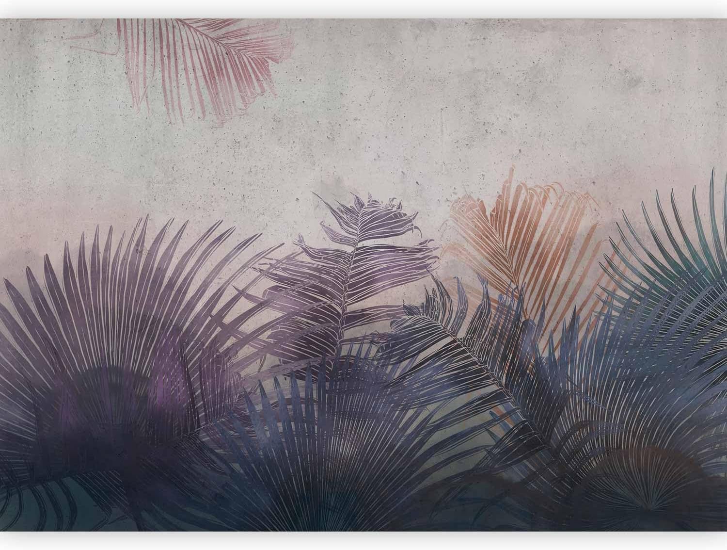 artgeist Wall Mural Jungle 173x124 in - Peel and Stick Self-Adhesive Wallpaper Removable Large Sticker Foil Wall Decor Print Picture Image Design Leaves Botanical Nature Purple Grey b-A-0827-a-a