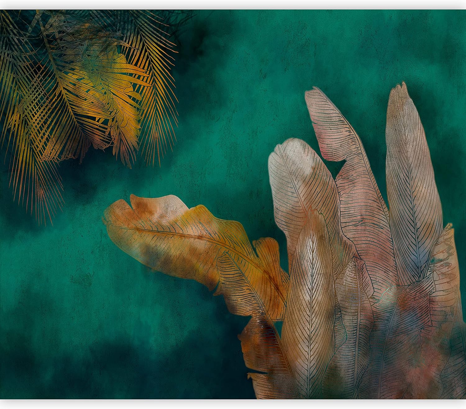 artgeist Wall Mural Jungle 77x55 in - XXL Peel and Stick Self-Adhesive Wallpaper Removable Large Sticker Foil Wall Decor Print Picture Image Design Leaves Green Yellow Nature b-A-0825-a-a