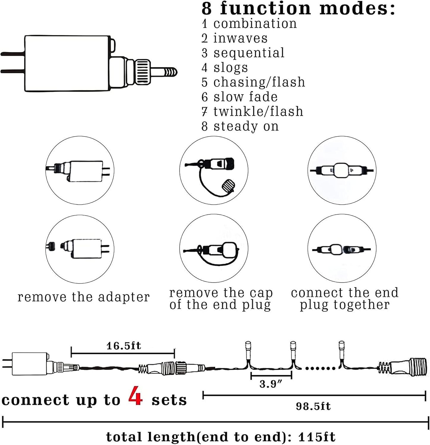 - Connectable: Can connect up to 3 light strings (under 1000 LED), connect according to the size of the scene you need to decorate, to meet the needs of various venue decorations to the greatest extent.