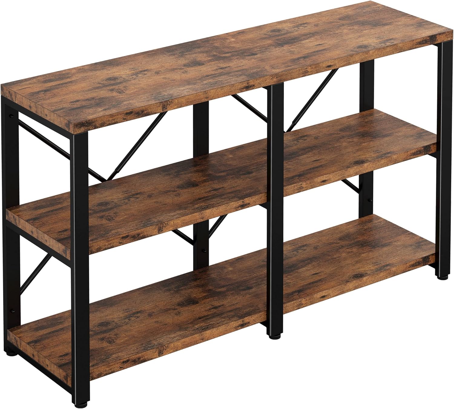 IRONCK Rustic Entryway Console Table, Long Hallway Table 47 in 3-Tier, TV Stand Entertainment Center Media Stand for Living Room, Industrial Style, Vintage Brown