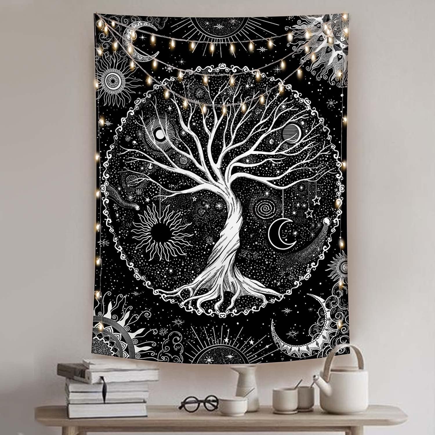 Lunerfex Tree of Life Tapestry Black and White Tapestry Mystical Sun and Moon Tapestries for Bedroom and Living Room Decor Black Tree 36×48 Inches
