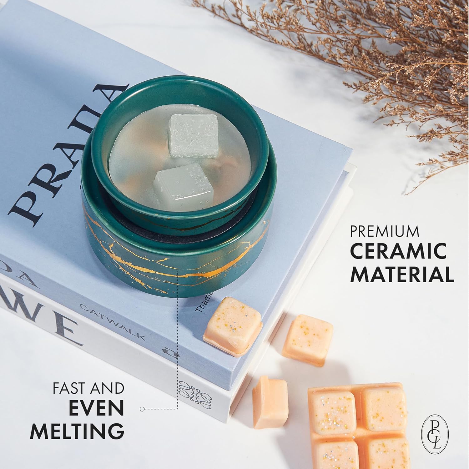 PALANCHY Wax Melt Warmer Ceramic 2-in-1 Oil Burner Electric Candle Wax Warmer Burner Melter Fragrance Warmer for Scented Waxs Home Office Bedroom Aromatherapy Gift& Décor (Green Gold)