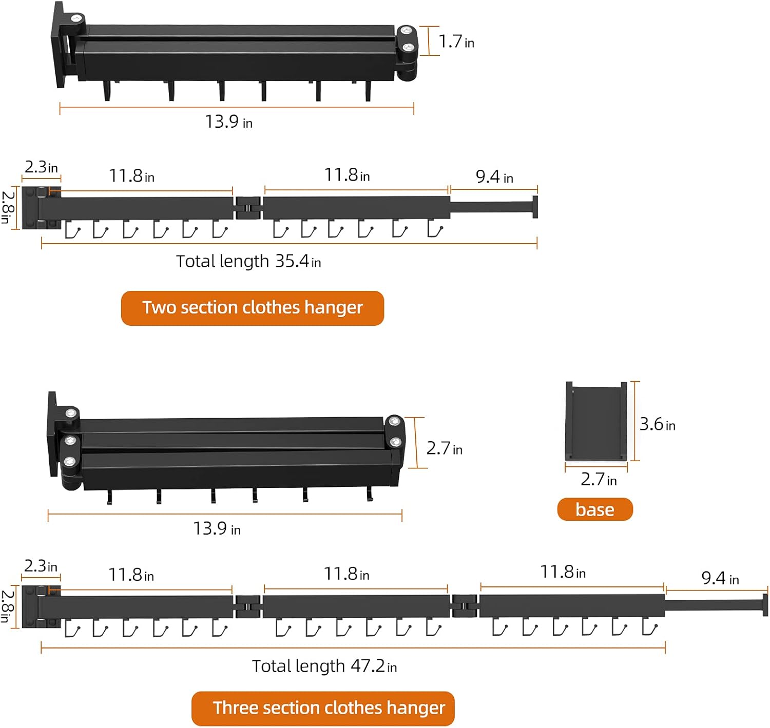 - âś… Classic 2-Fold Clothes Drying Rack -- Black, Folded length: 13.9" & Extended Length: 34.5". Perfect for small laundry room organizer.***Warm Tips: sheetrock wall is not recommended.