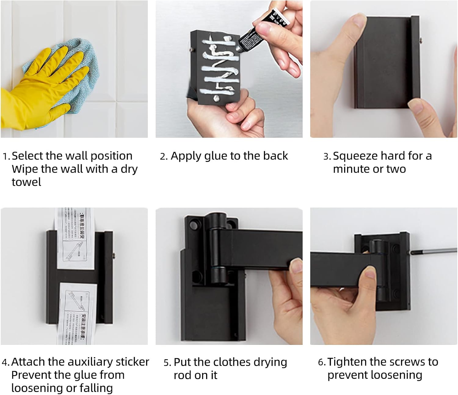 - âś… Punch-free & Drilling Installation to Choose -- Whether you prefer a punch-free installation (With No-Drill Adhesive: Clothing Weightâ©˝60 LBS) or traditional drilling, our clothes drying rack wall mounted offers simple installation methods suitable for various surfaces, including smooth ceramic tiles, ensuring it fits perfectly in your space. (Tips: Please make sure the wall or wood board is solid before installation.)