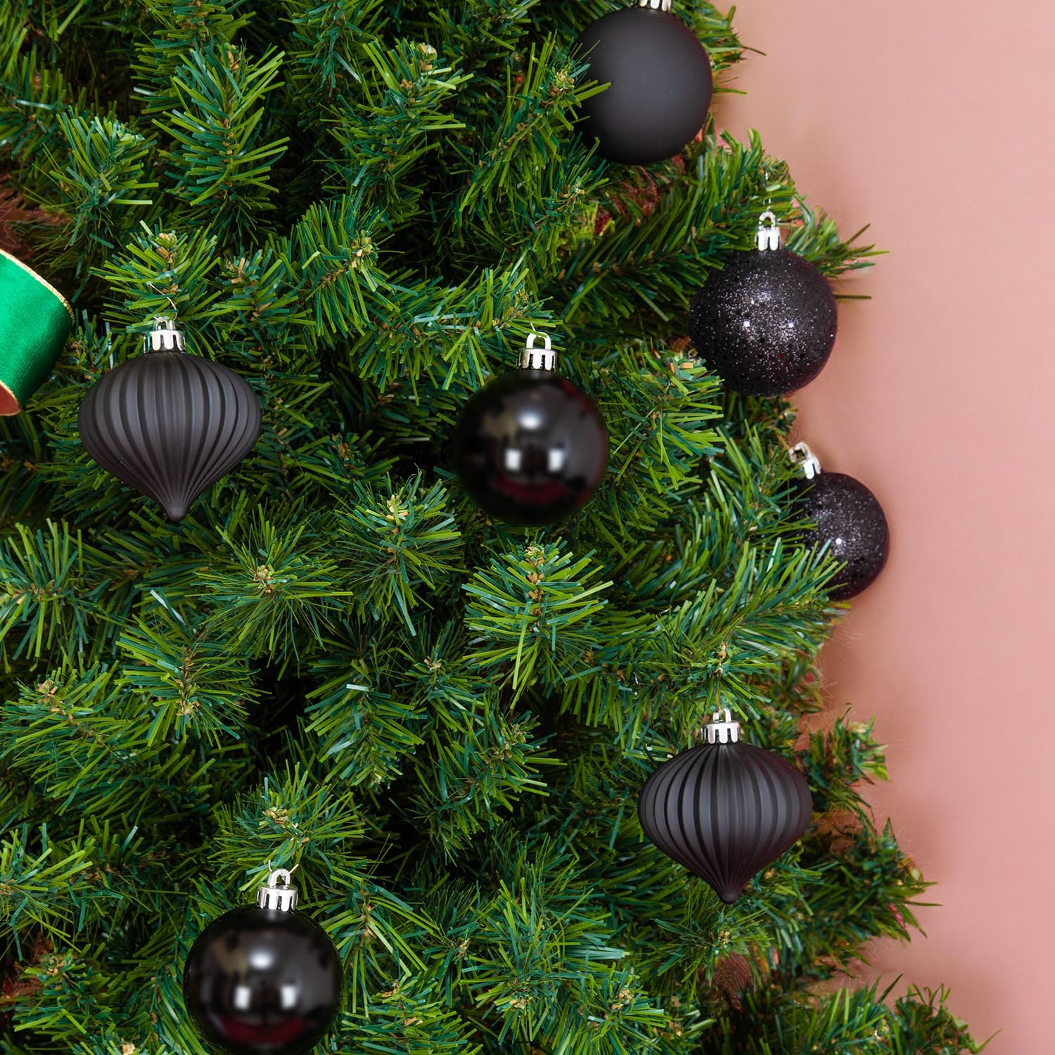 Every Day is Christmas Ornaments, Shatterproof Christmas Tree Ornament Set, Christmas Balls Decoration 50 Count (2.24"/57mm, New Black)
