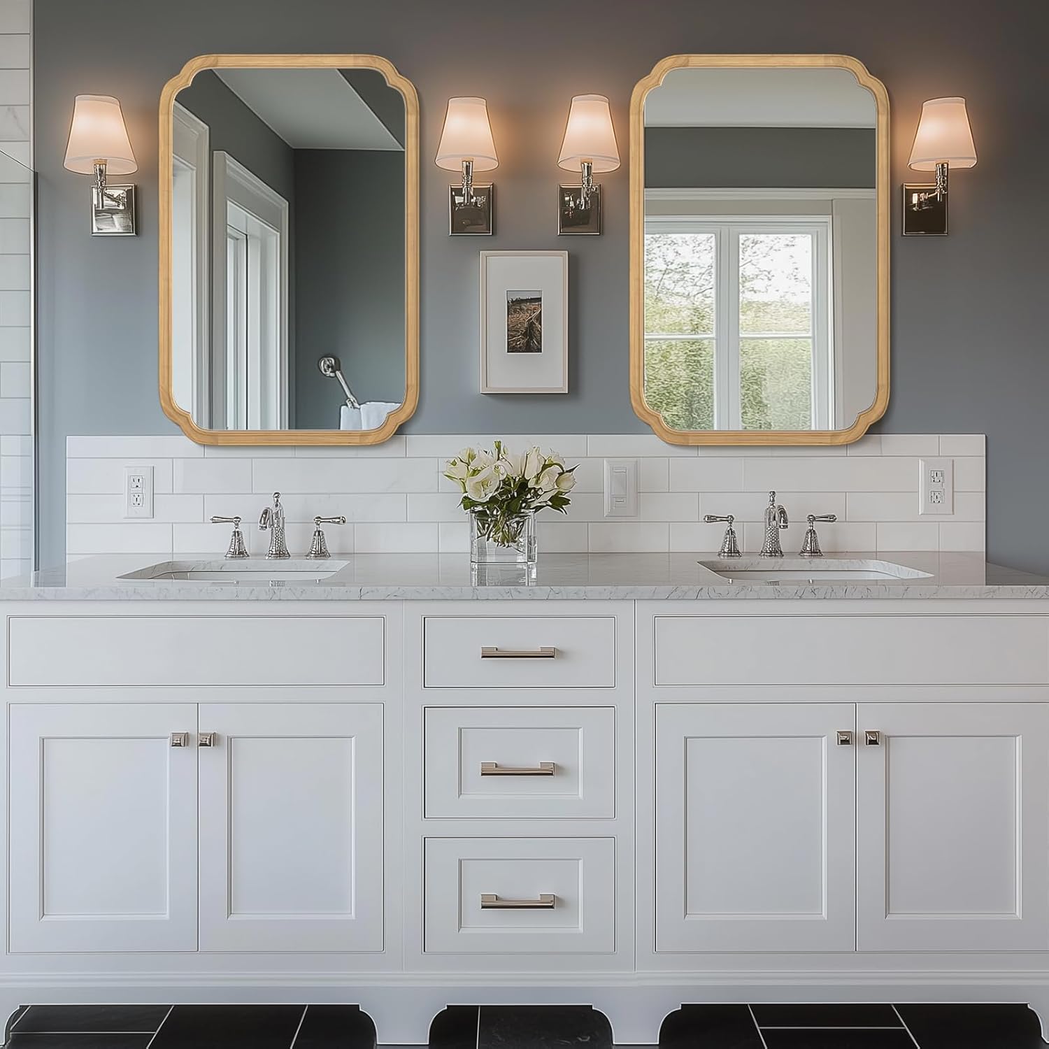 - Decorative Mirror: Modern minimalist style and consistent gorgeous aesthetic design are suitable to decorate any space, Fit farmhouse, bathroom, bedroom, living room, entryway, etc. Visually expand the space, increase the light, enhance the beauty of any room in the home.