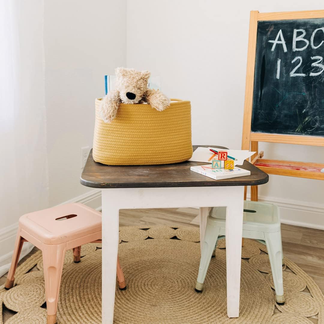 - Premium Cotton Rope Weave – These beautiful rainbow toy baskets are woven with high-quality, all-natural cotton to give them the right balance of softness and durability. This makes them great for bedrooms, nurseries, and laundry rooms as rainbow room decor.