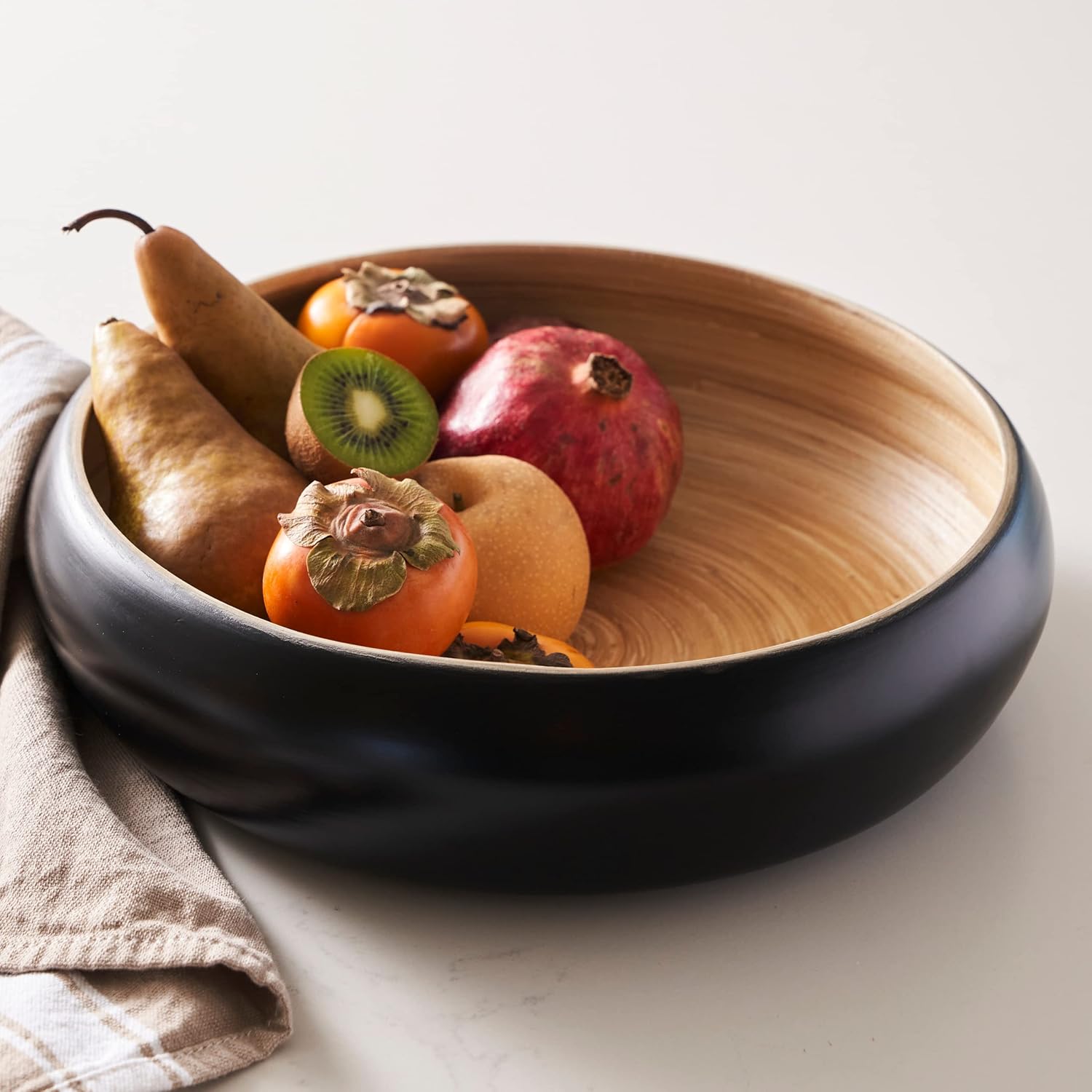 Fruit Bowl For Kitchen Counter, Decorative Bowl, Large Serving Bowl Or Fruit Basket For Kitchen Spun Bamboo (Black)