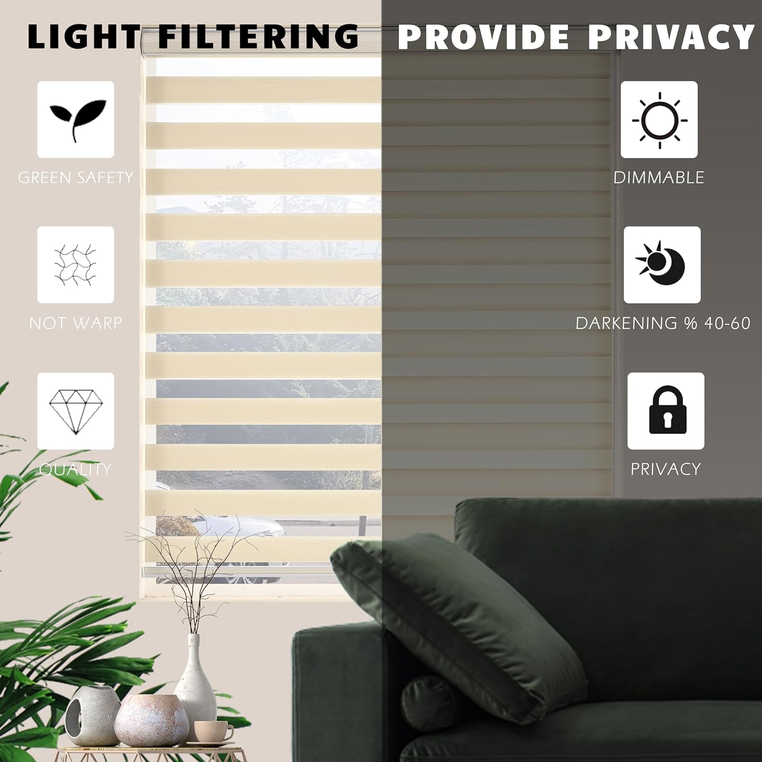 Custom Zebra Blinds for Windows, Free-Stop Zebra Shades, Dual Layer Light Filtering Sheer Blinds for Indoor Windows, Roller Window Shades for Privacy (20" W X 72" H, Cream)